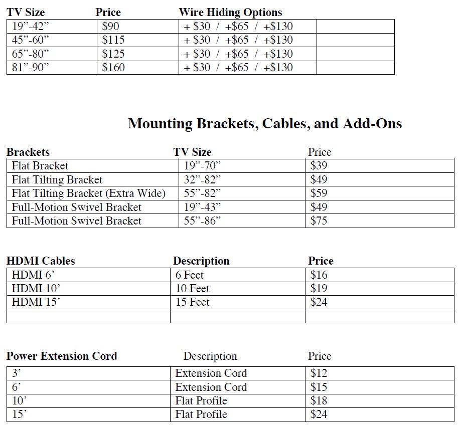 TV mounting starts as Low as $90.